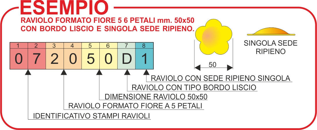 The flower shape is original and can be adapted to many types of fillings and seasonings: we have currently available flower shapes with 5 petals (20, this one), with 6 petals (21), with 12 petals (22), with 19 petals (23) and with 23 petals (24).